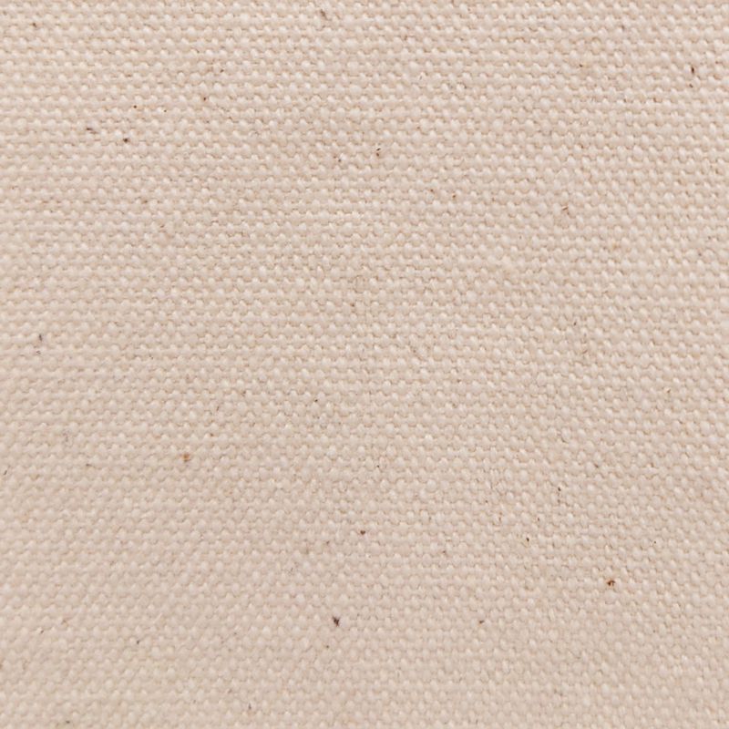 無漂白の木綿生地。木綿本来に混入されている茶色のつぶを含んだ、薄手平織りの生地です。トートバッグやエコバッグで使用されるものは4オンス前後のものが多く、布製ノベルティなどに使用されるバッグでは一番流通量が多いものとなります。厚みはベッドシーツほどです。