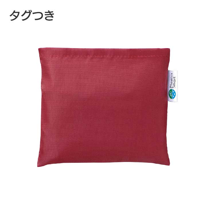 プラスチック・スマート(プラスチックとの賢い付き合い方を考え、未来へ向けた様々な取組を推進するため、環境省が主導しているキャンペーン)のタグが付いた、エコなポータブルバッグ。回収されたペットボトルを再生利用し、製造から使用までとことんエコにこだわりました。マチ広でコンビニのお弁当も入る為、ランチのお供に大活躍。折りたたんでゴムバンドで留めればコンパクトに持ち運びもできます。