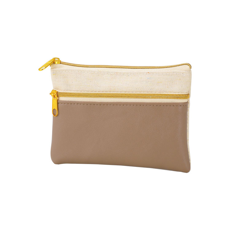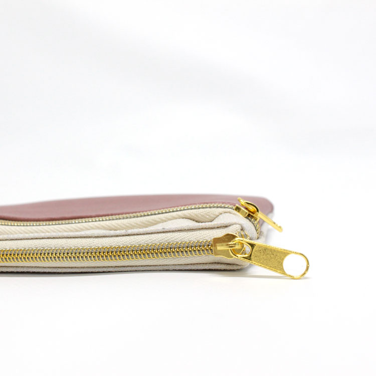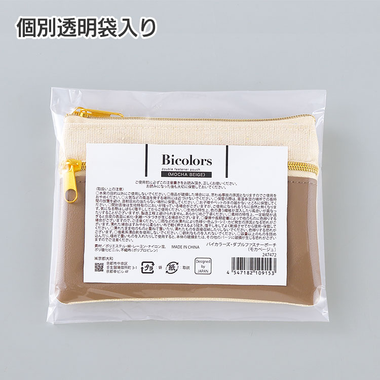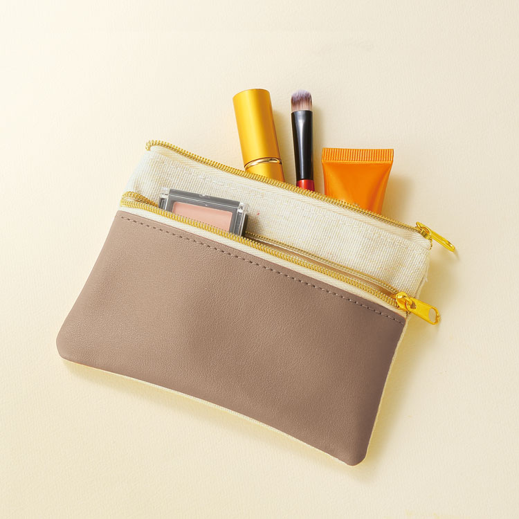 K52678 / バイカラーダブルファスナーポーチ ナチュラル×モカベージュ